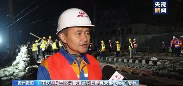 中铁八局三公司都拉营项目部党支部书记 卢寒秋:整个都拉营陆海通物流港8组轨道与都拉营车站整个线路连通,然后整个将对贵阳的川黔铁路、沪昆铁路等所有的铁路干线都连通了,标志着贵阳的一个新的运输通道的完成。